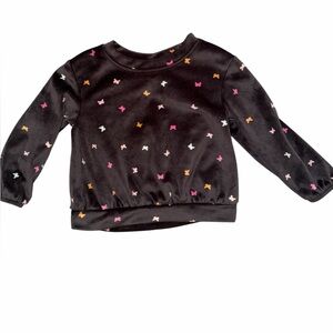 This cozy kids sweatshirt features a charming butterfly pattern in pink, orange, and blue. Perfect for adding a touch of fun to any outfit.