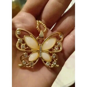This enchanting necklace features a delicate butterfly pendant adorned with shimmering opal colored stone,all bathed in a rose gold color. The long sweater chain adds a touch of elegance, making it a perfect piece for any occasion.