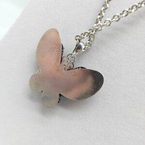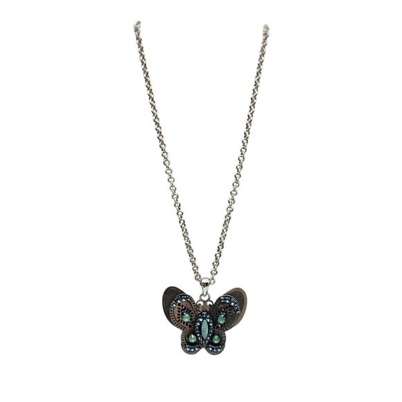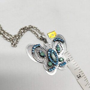 Butterfly Pendant Necklace By Jessica Simpson Blue Green Crystal Silver Tone