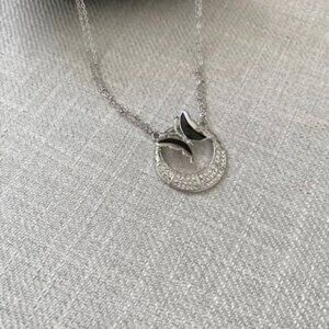 Butterfly Pendant Necklace - Silvertone- Classy-Double Chain