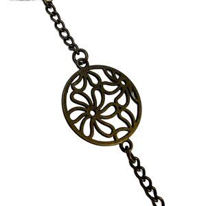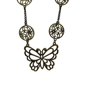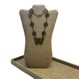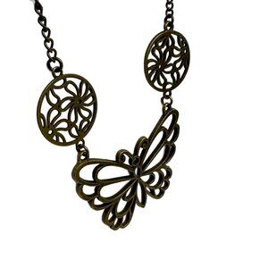 Butterfly Pendant on Flower Chain Necklace Antique Bronze Tone