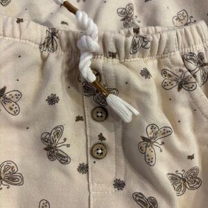 Adorable baby outfit with butterfly print. Features a top with puff sleeves and matching pants.