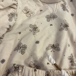 Two piece Jessica Simpson neutral butterfly outfit, baby girl 3 to 6 month super cute never worn took off tags and washed, but we never put it on. Smoke free pet free home.