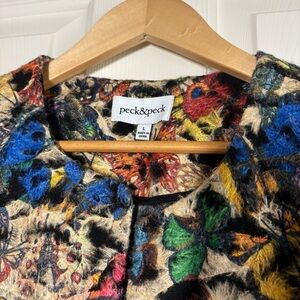 Butterfly Print Jacket Cardigan Womens Large Peck & Peck Eclectic Artsy Colorful