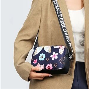 Butterfly Print Lightweight Crossbody Bag W/ Adjustable Strap. NEW!