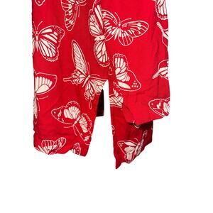 Butterfly Print Tunic Long Sleeve Casual Rayon Blouse Red Bohemian Size XL USA