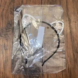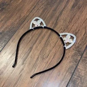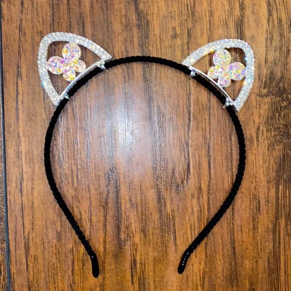 New with tags condition black felt coated headband with butterfly rhinestone detail cat ears one size