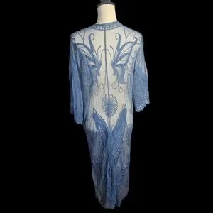 NWT - gorgeous blue duster with butterfly details. OSFM B9