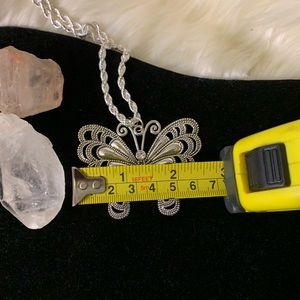 4mm Silver Brass 22 in Rope Chain, Large silver butterfly with rhinestone