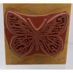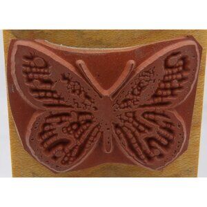 Decorative butterfly design for crafting and scrapbooking. Durable wood mount with intricate rubber detail for clear impressions.