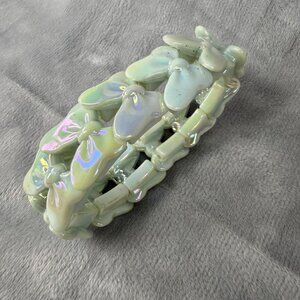 Butterfly Shape Beaded Bracelet Double Hole Beads Iridescent Stretch Adjustable. Unbranded. Elastic is good. Could be worn as is or take apart and used for craft, jewelry making. Unique Shape, Double holes. Butterfly Shape Beads.