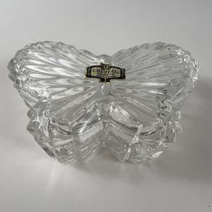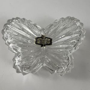 Butterfly Shape Trinket Ring Gift Box Zajecar 24% Lead Crystal Yugoslavian Vtg