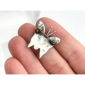Butterfly Shaped Mexican Made Abalone Shell Inlay Vintage Sterling Silver Brooch