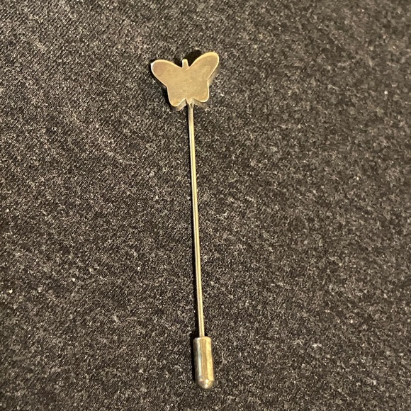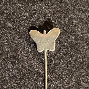 Elegant butterfly stick pin in silver tone. Perfect for adding a touch of charm to any outfit.