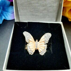 Cream Colored Butterfly Ring White Gemstones Size 8 Stretch Paparazzi