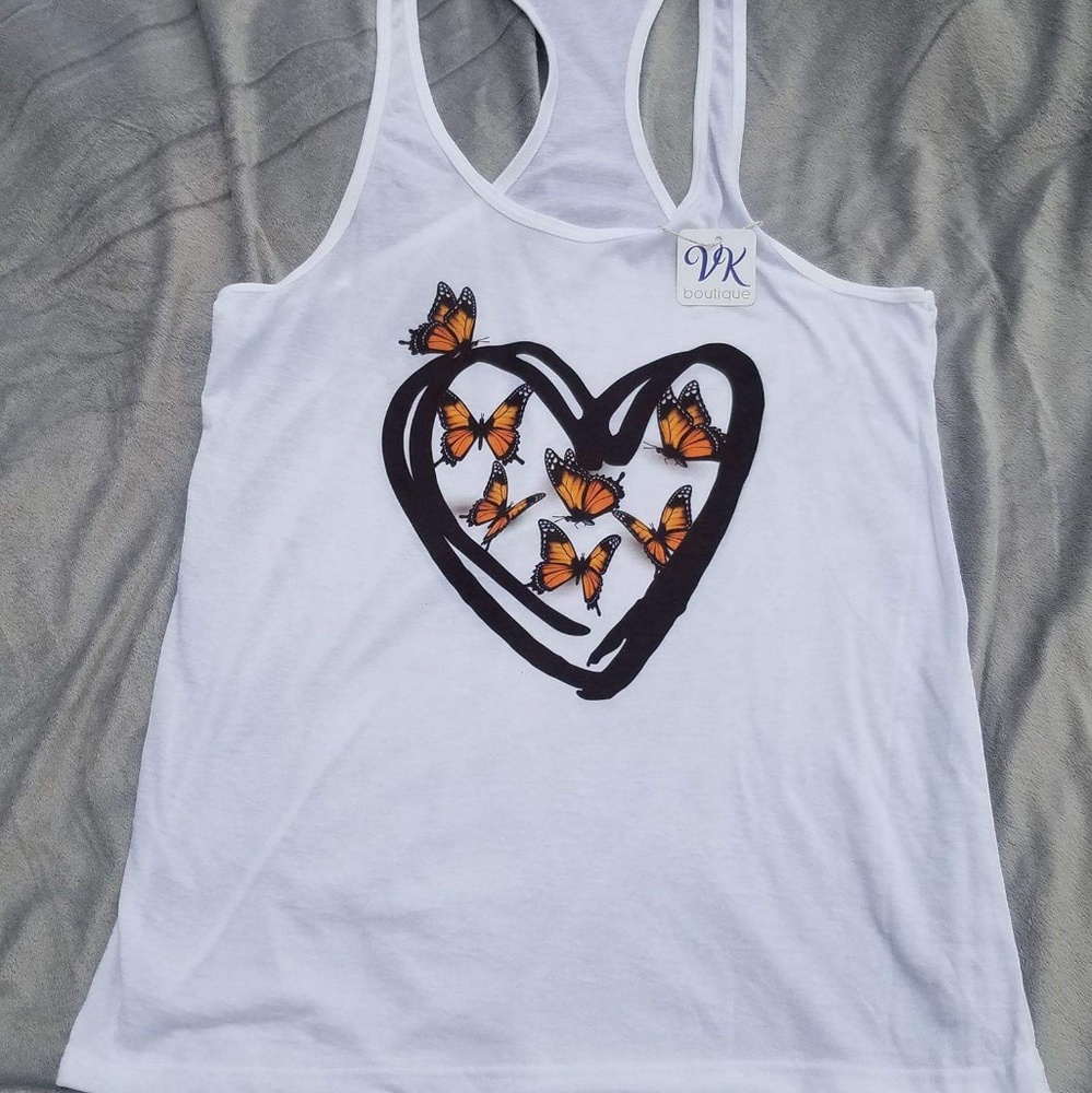 This Butterfly Tank is new with my boutiques tags on it. I have it available in a small and a large. It does run small so I suggest ordering a size up unless you like your tanks tight.