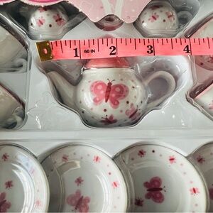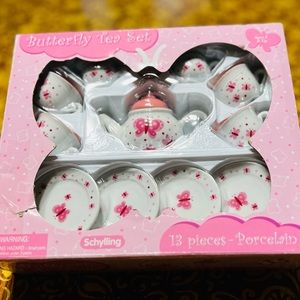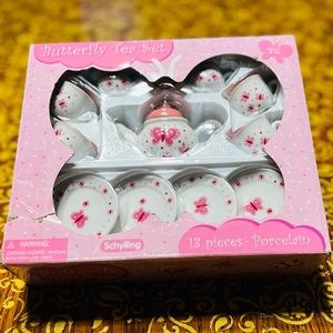 Super cute Butterfly Tea Set for 4! 13 pieces - porcelain. Brand new! Only a slight rip on left side of package from when I pulled it out of my closet.