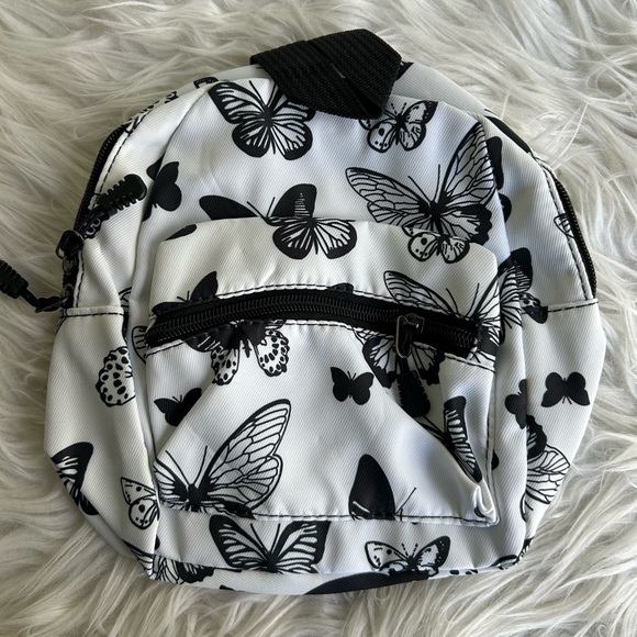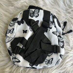 Stylish tiny backpack with a black and white butterfly design. Perfect for casual outings.