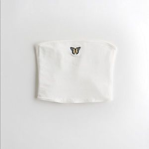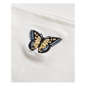 This cropped tube top is designed in soft stretch cotton fabric with a small embroidered butterfly. Such a cute piece to wear solo or to layer🦋 Plus, it’s reversible! Brand New with Tags.