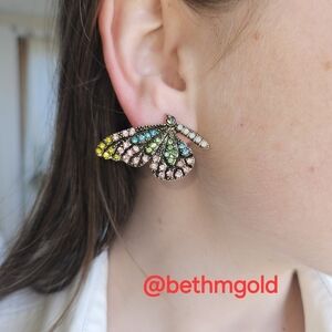 Playful, colorful butterfly wings adorned with sparkly rhinestones. They look like wings are "open" sitting on your ear.