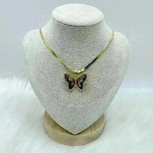 Butterfly Zircon Pendant Necklace in Black