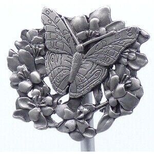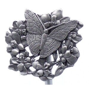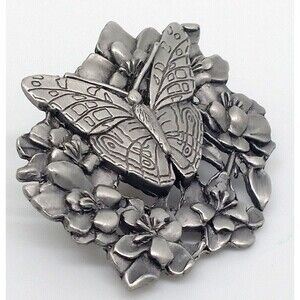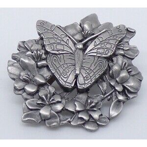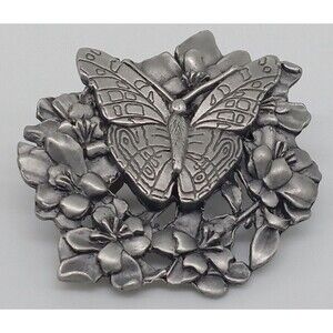 Butterfly and Flowers Brooch Scatter Pin Pewter Metal Birds & Bloom 1998 Vintage