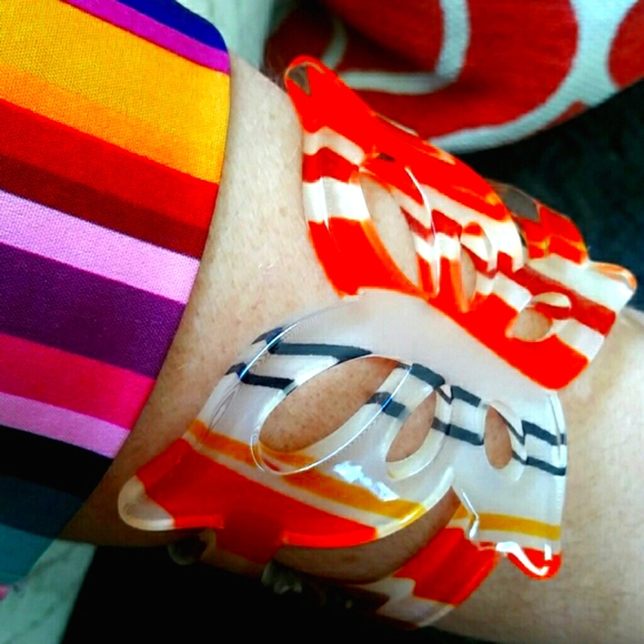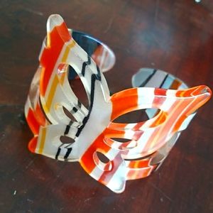 Butterfly resin 1970's inspired orange/white multi color stripe cuff.