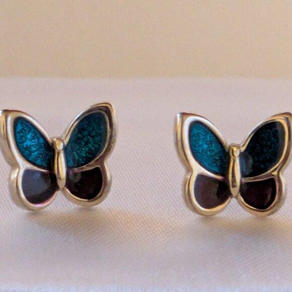 Add a touch of fun with these cute blue and purple butterfly earrings.