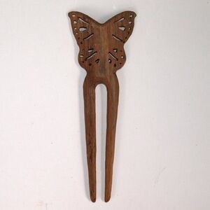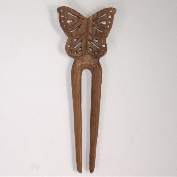 Playful and whimsical handcarved hardwood butterfly hair pin.