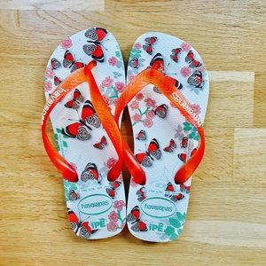 Fun and flirty havaiana flip flops with orange butterfly pattern. Perfect for the summer
