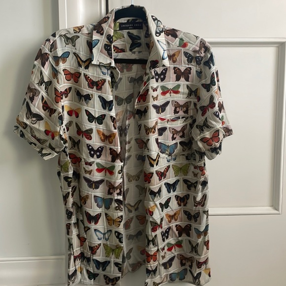 Butterfly print button down