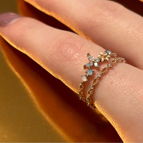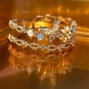 Note a small imperfection with a missing stone in the last photo, open back makes the ring slightly adjustable, gold style