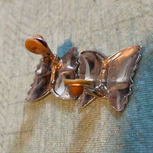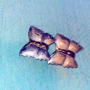 Butterfly silver vintage clip on earrings lightweight detail scallop wings EUC
