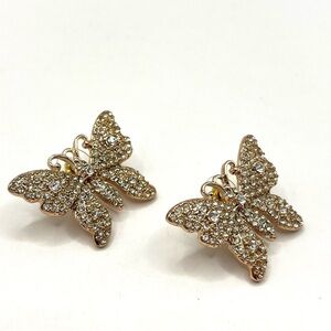 Butterfly sparkling earrings Gold Tone Rhinestones Large Pierced stud Earrings