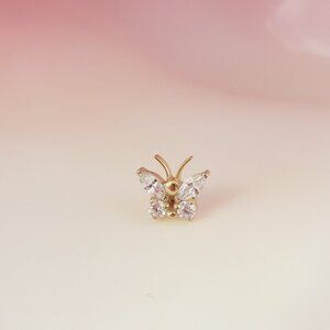 This is a threadless push in TOP ONLY. This is a gold and clear cubic zirconia butterfly shape design. Super cute design and could be worn in various ear piercing locations.