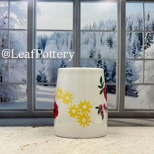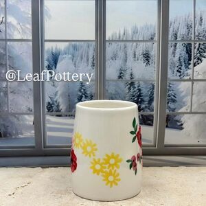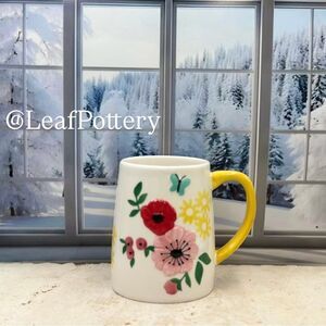 Dimensions: 4.5”H x 5”L x 3.25”W, weight 12.8oz ,Holds 18oz fluid ounces, Materials: Ceramic, Made in China , Color: Multi Colored , floral/butterfly illustrations its strength and durability,! Dishwasher & Microwave safe!