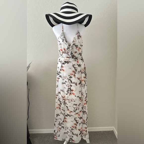 Butterfly Print Ruffled High-Low Maxi Dress