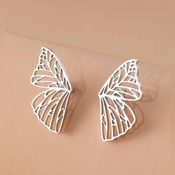Hollow butterfly stud earrings in silver tone