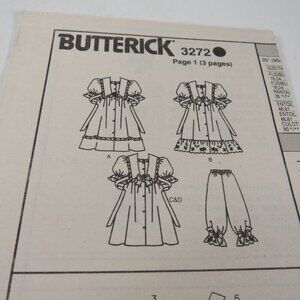 Butterick 3272 Clothing Pattern Child Dress, Bloomers - Pantaloons UNCUT