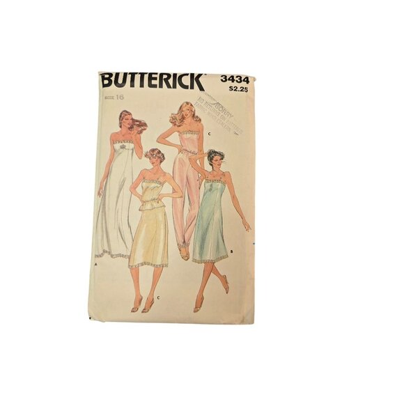 Butterick 3434 Womens Size 16 Misses Lingerie Nightgown & Pajamas 7 Pieces
