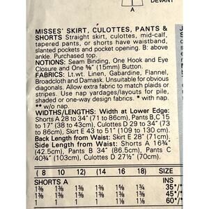 Butterick 3640 skirt pants shorts culottes size 14 16 18