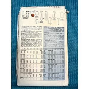 Butterick 3640 pattern skirt pants shorts culottes size 14 16 18