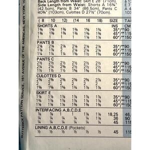 Butterick 3640 skirt pants shorts culottes size 14 16 18