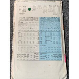 This versatile Butterick sewing pattern allows the creation of skirts, culottes, and pants in sizes 6-8-10. Ideal for customizing your wardrobe.