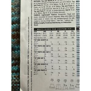 Butterick 3846 pattern toddlers top shorts pants hat sz L XL