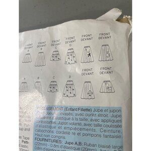 This Butterick 4113 sewing pattern is a vintage girl's costume design featuring flared poodle skirts with applique options. Previously used and cut, packaging shows wear. Multi-size included.
