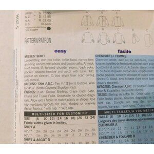 Butterick 5208 Linda Allard Ellen Tracy Misses Shirt Pattern Size 8-12 Uncut