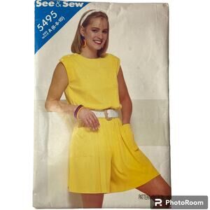 Butterick 5495 Jumpsuit Pattern Miss 6-10 Loose Fit Cap Sleeve Above Knee Pocket