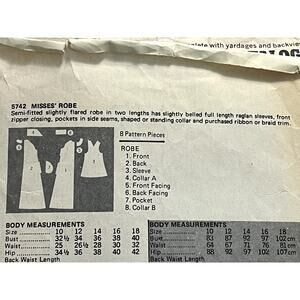Butterick 5742 Pattern house coat robe 1970s size 14