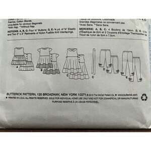 Butterick 5877 toddler girls top tunic dress leggings size 2 3 4 5
